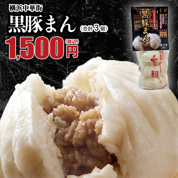 黒豚まん 3個 BIGサイズ 人気 冷凍 点心 お取り寄せ 中華まん 内祝い 飲茶 贈り物 グルメ 惣菜 贈り物 冷凍食品 横浜中華街 肉まん おやつ お土産 皇朝