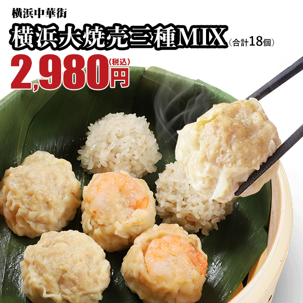 横浜大焼売6個・横浜海老大焼売6個・もち米焼売6個 横浜大焼売三種MIX 計18個入