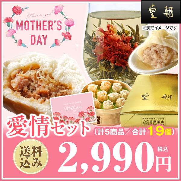 母の日 ギフト グルメ 花 プレゼント 2026 送料込み 配送日指定可 セット 人気 カーネーション メッセージカード 送料無料 中華点心 中華惣菜 愛情セット 肉まん 餃子